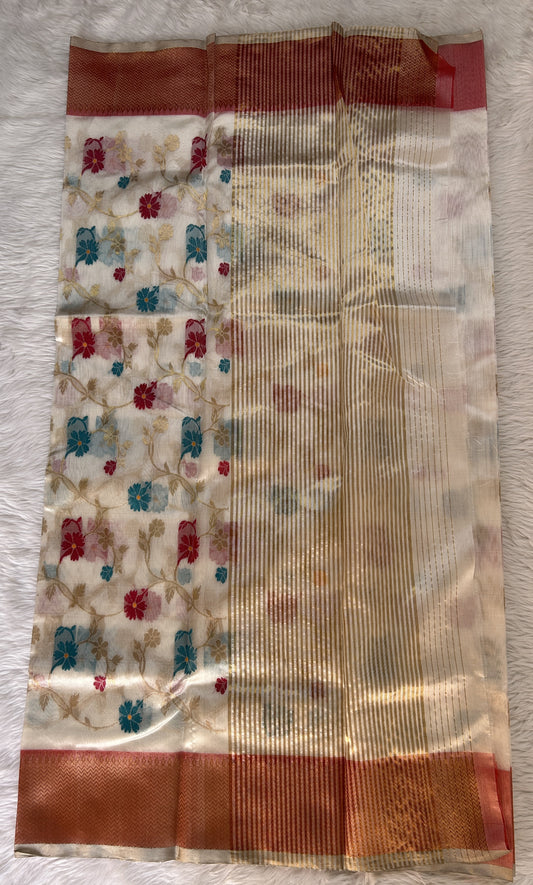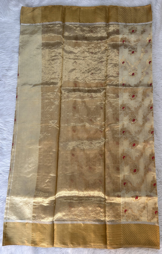 Chanderi Silk Saree Cream Colored Complemented with a Gold Zari Border