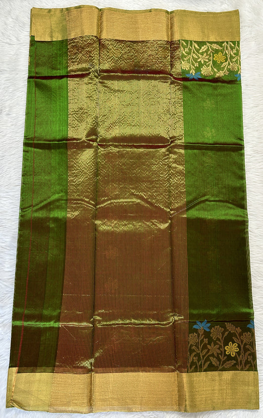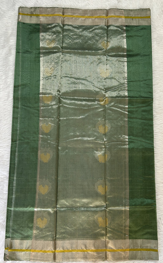 Chanderi Silk Saree Dark Green Colored Complemented with a Gold Zari Border