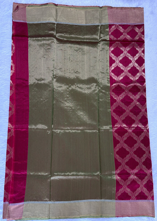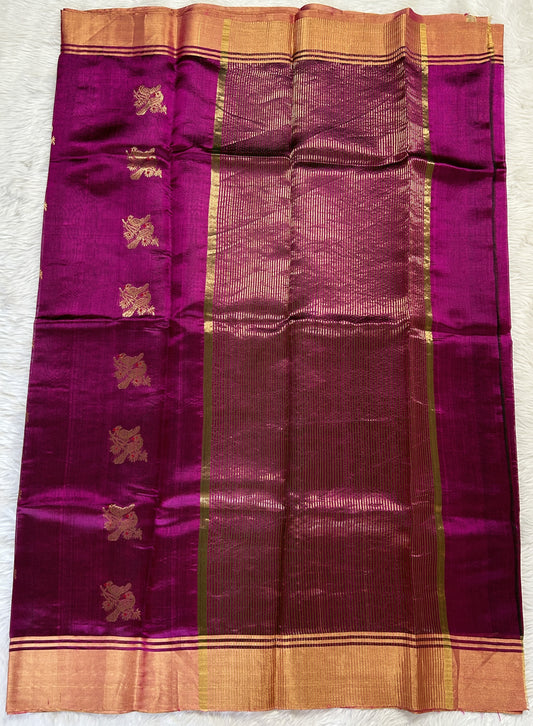 Chanderi Silk Saree Magenta Colored Complemented with a Gold Zari Border