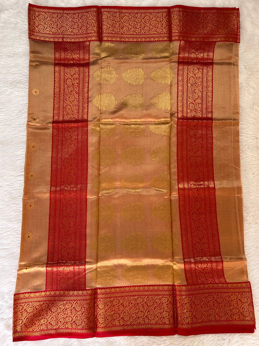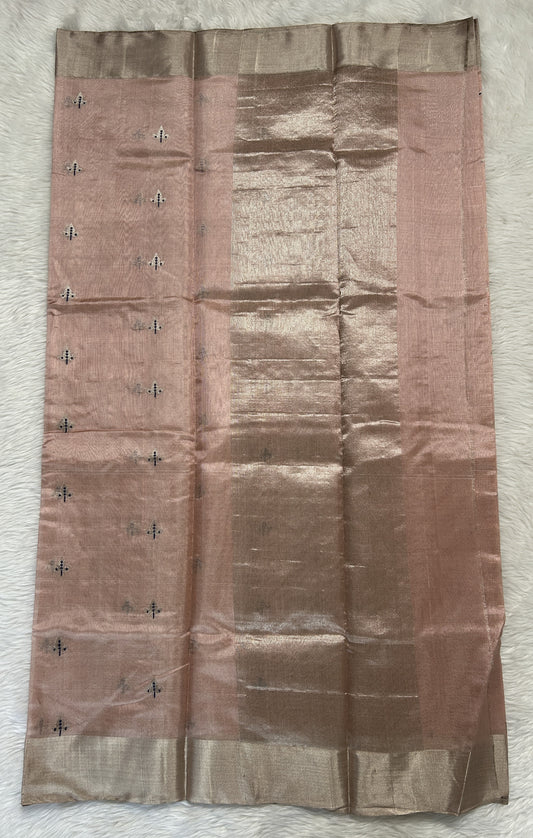 Chanderi Silk Saree Copper Colored Complemented with a Gold Zari Border