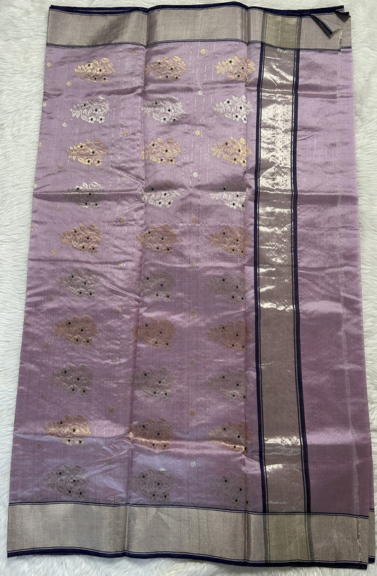 Chanderi Silk Saree Lavender Colored Complemented with a Silver Zari border
