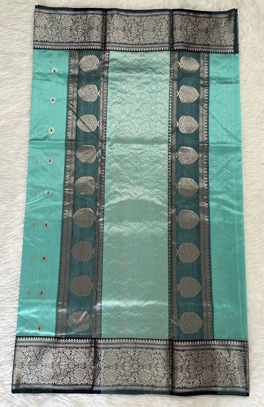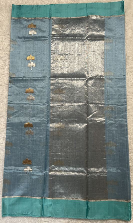 Chanderi Pattu Saree Sea Blue colored saree complemented with a Dark Grey Kanchi Border
