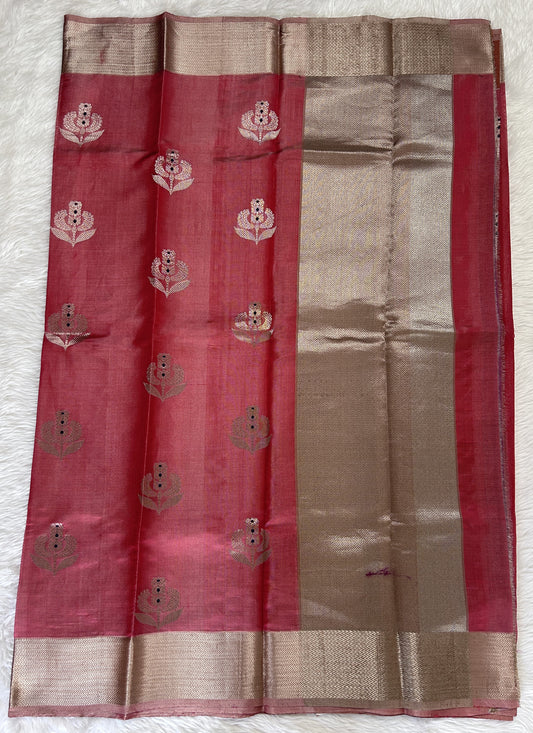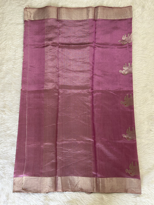 Chanderi Pattu Saree Rose Wood colored saree complemented with a Gold Zari Border