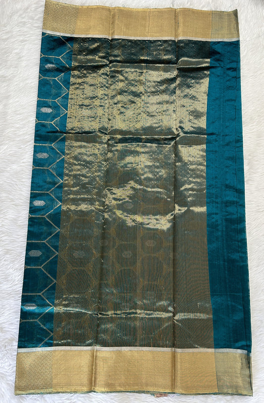 Chanderi Silk Saree Dark Sea Green Colored Complemented with a Gold Zari Border