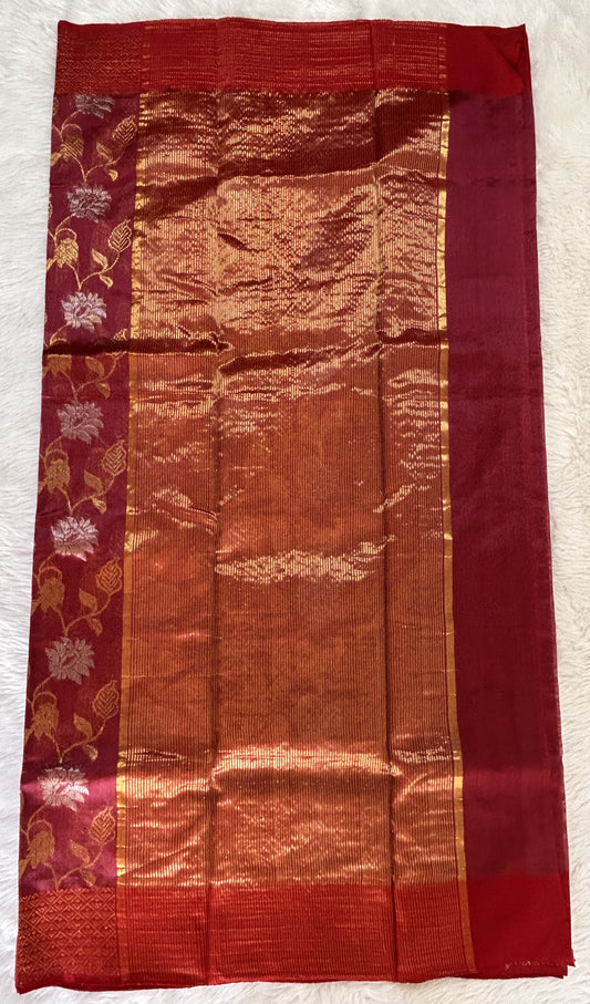 Chanderi Pattu Saree Venetian Red colored saree complemented with a Gold Zari Border