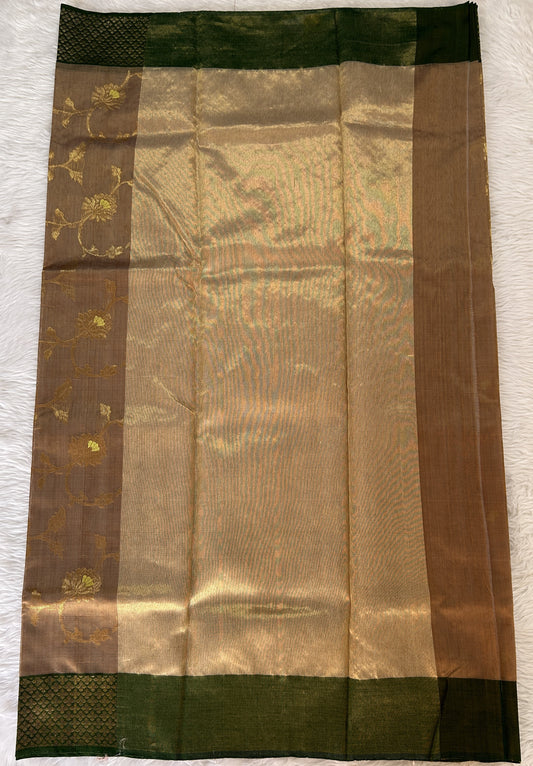 Chanderi Pattu Saree Light Brown colored saree complemented with a Dark Green Gold Zari Border