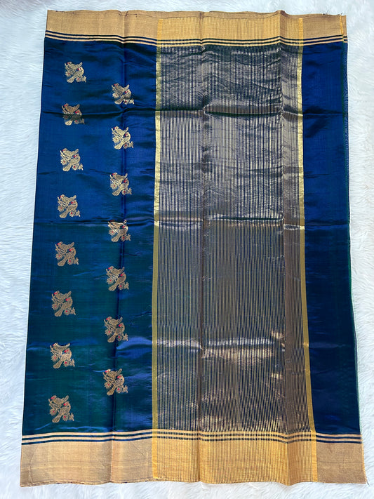 Chanderi Pattu Saree Peacock Blue colored saree complemented with a Gold Zari border