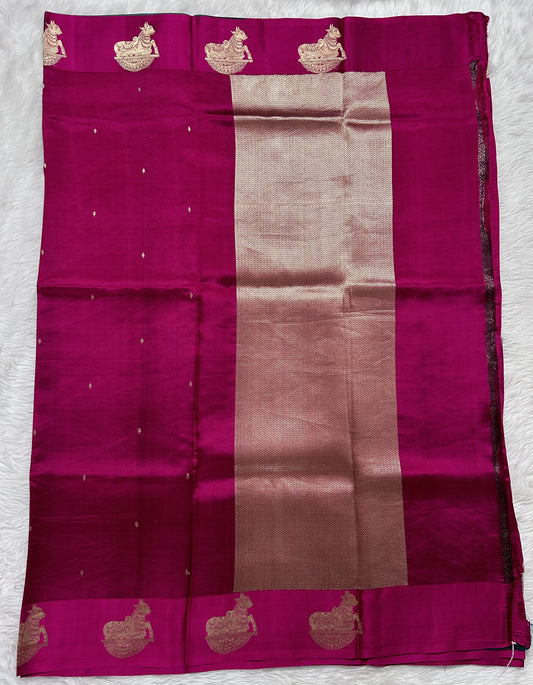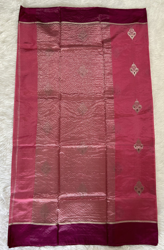 Raw Mango or Pooniya Silk Saree Deep Pink Colored Complemented With a Mushrur Border