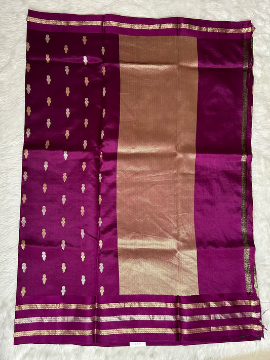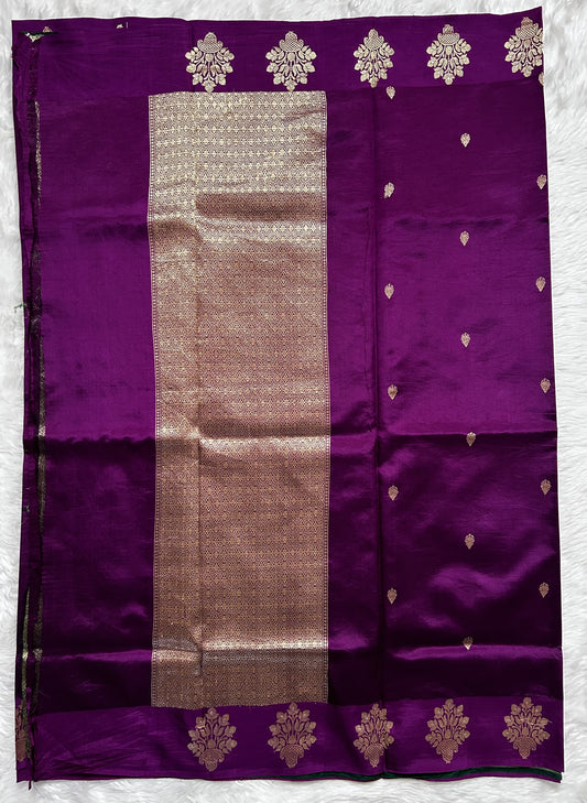 Raw Mango or Pooniya Silk Saree Dark Purple Colored Complemented With a Mashrur Border