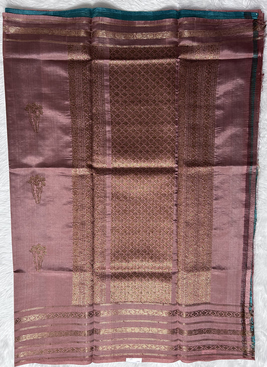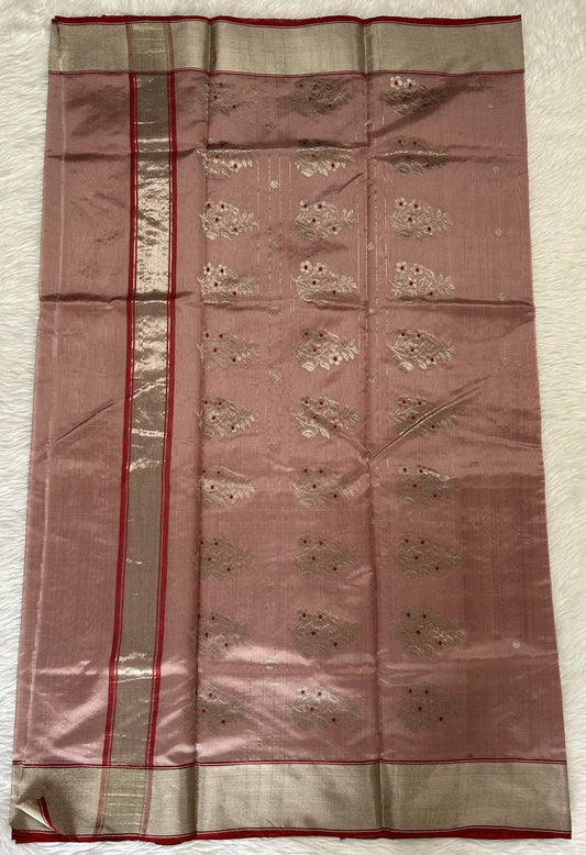 Chanderi Silk Saree Dusty Rose Colored Complemented with a Silver Zari border
