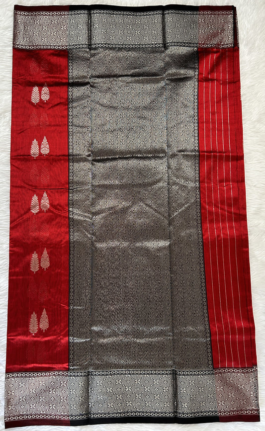 Banarasi Tussar Georgette Saree Red Colored Exquisite Zari Border.