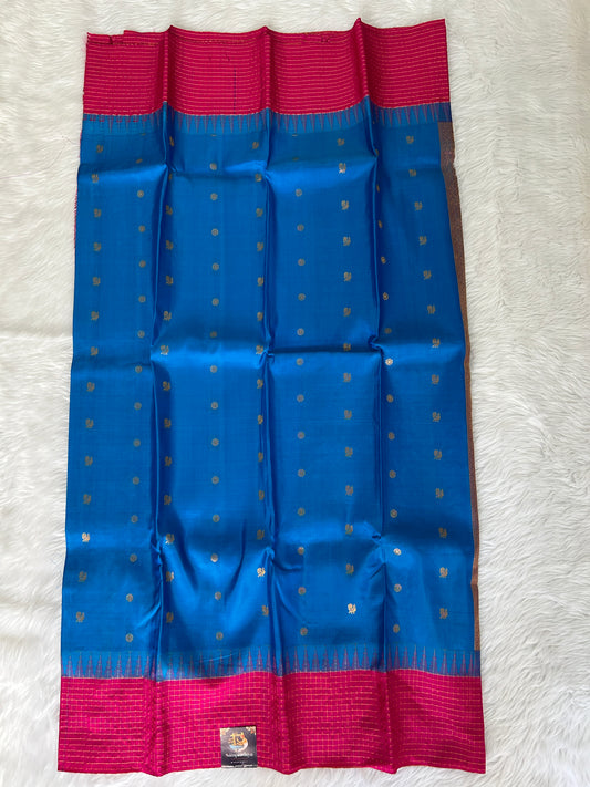 Gadwal Pattu Saree Rama Blue colored saree complemented with a Pink Kanchi border