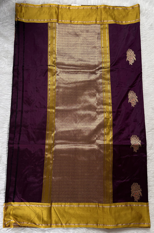 Raw Mango or Pooniya Silk Saree Grape Purple Colored Complemented With a Goldish Yellow Border