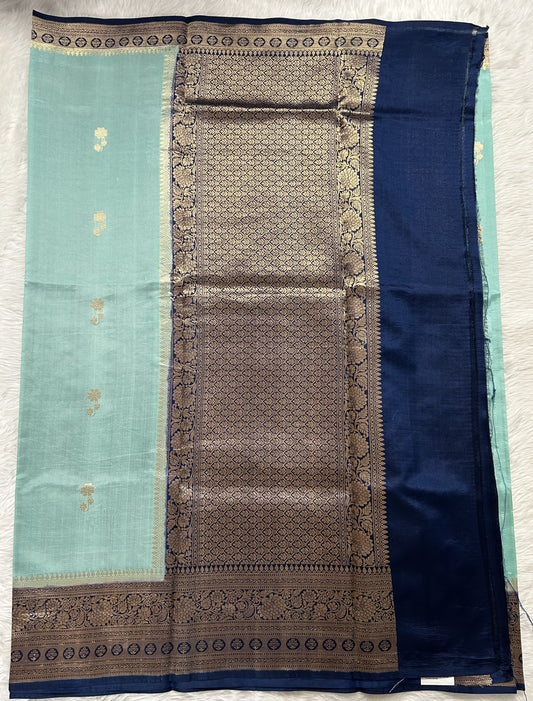 Semi Tussar Tissue Saree Sea Blue colored complemented with a Zari Border.