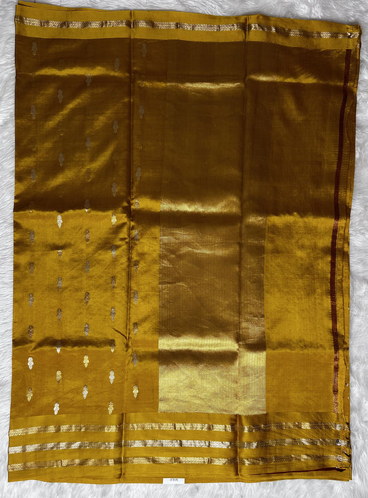 Raw Mango or Pooniya Silk Saree Turmeric Yellow Colored Complemented With a Mashrur Border