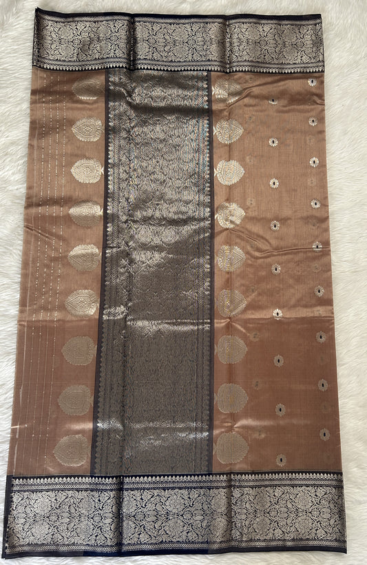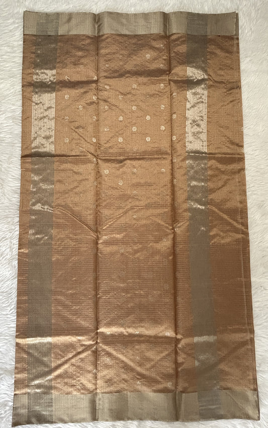 Chanderi Pattu Saree Pastel Brown colored saree complemented with a Cinder Color Kanchi border