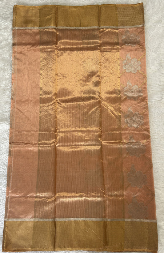 Chanderi Silk Saree Pastel Orange Colored Complemented with Gold Zari Weaving Kanchi border