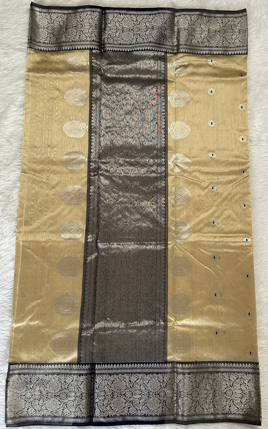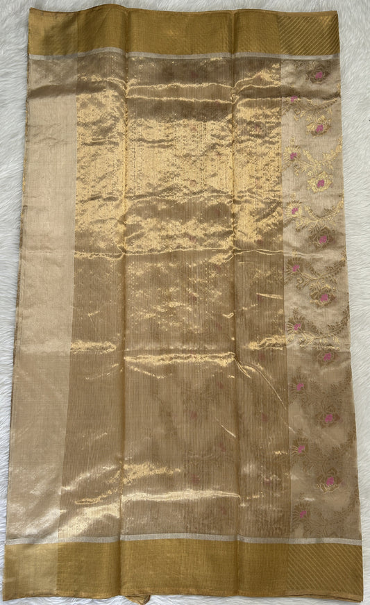 Chanderi Silk Saree Goldish Cream Colored Complemented with a Gold Zari border