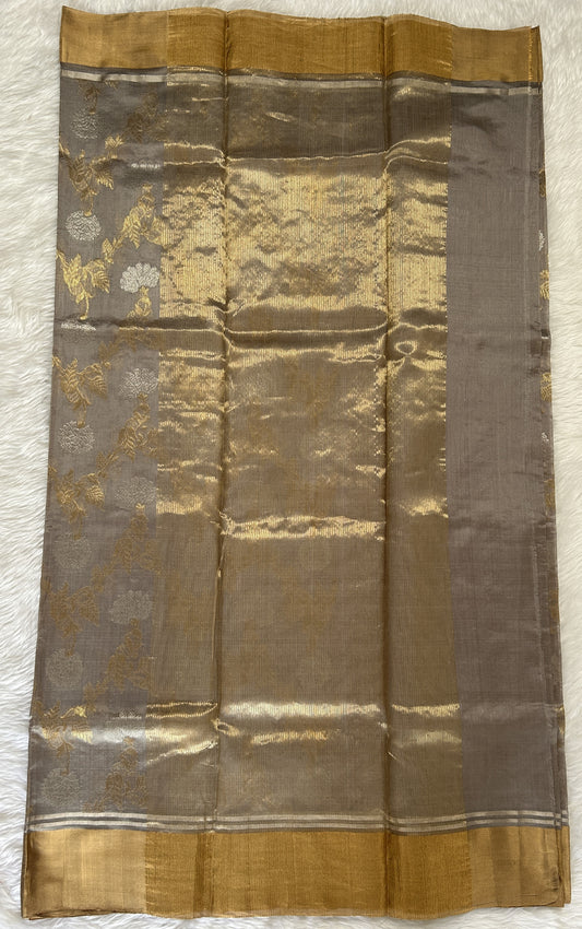 Chanderi Silk Saree Light Grey Colored Complemented with a Gold Zari Weaving border