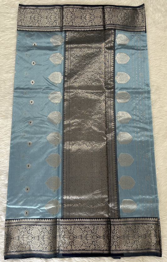 Chanderi Pattu Saree Light Blue colored saree complemented with a Prussian Blue Kanchi border