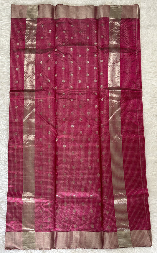 Chanderi Pattu Saree Magenta colored saree complemented with a Light Purple Silver Zari border