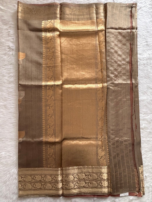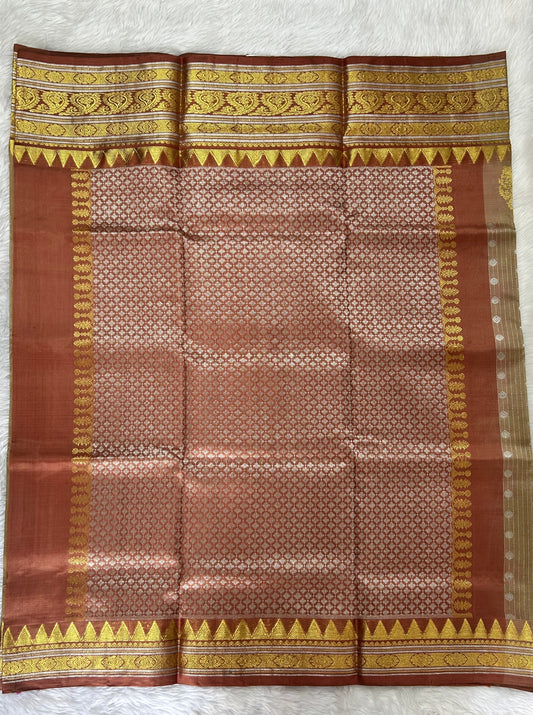 Raw Mango or Pooniya Silk Saree Brown Colored Complemented With a Gold Zari Gap Border