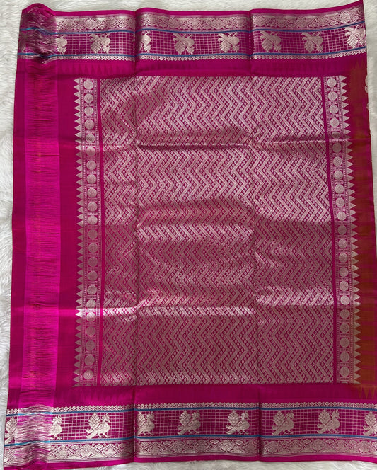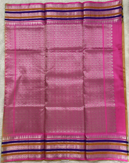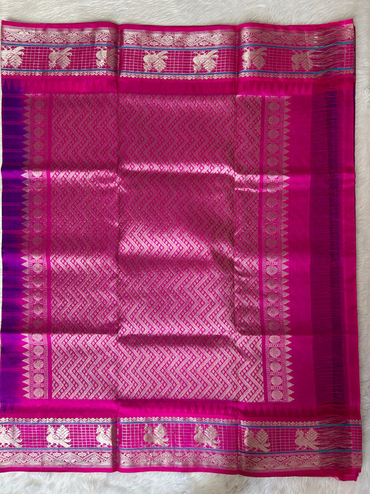 Venkatagiri Pattu Saree Purple Colored Complemented With a Pink Color Border