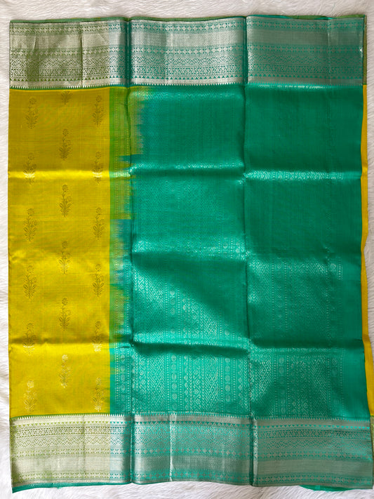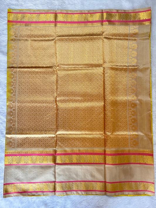Venkatagiri Pattu Saree Yellow Colored Complemented With a Pattu Lux Green Color Border