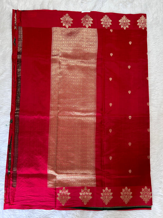 Raw Mango or Pooniya Silk Saree Blood Red Colored Complemented With a Mashru Border