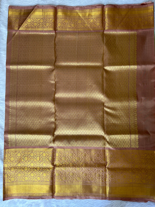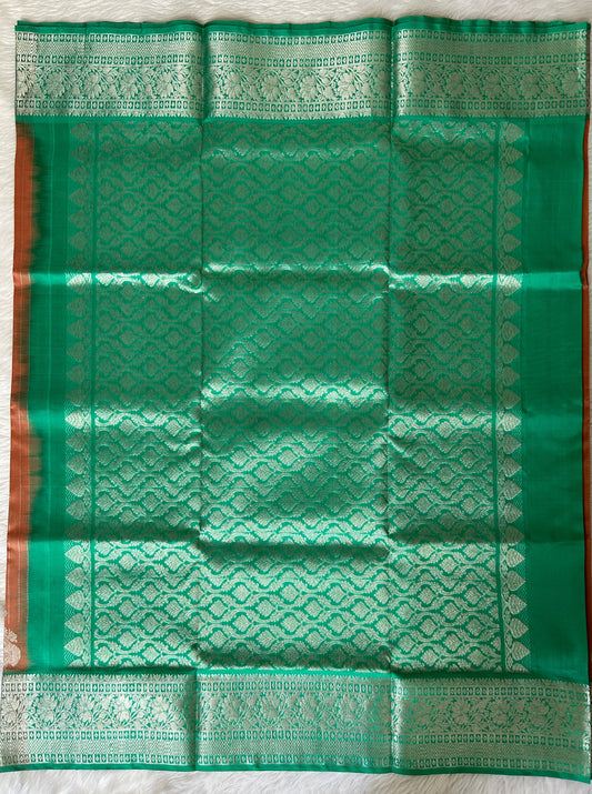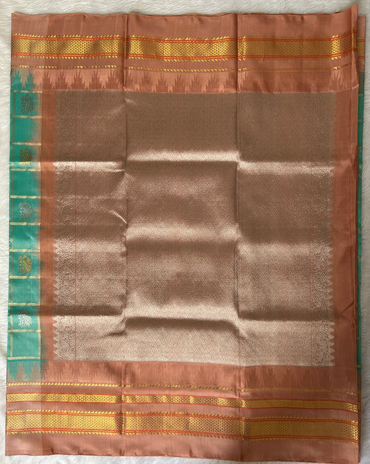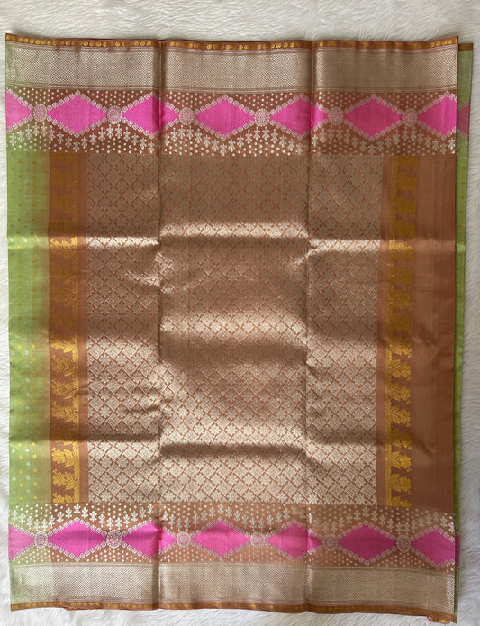 Venkatagiri Pattu Saree Apricot Brown Colored Complemented With a Lux Green Color Border