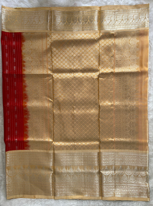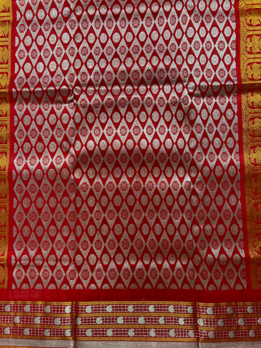 Venkatagiri Pattu Saree Red Colored Complemented With a Yellowish Cream Color Kuttu Border