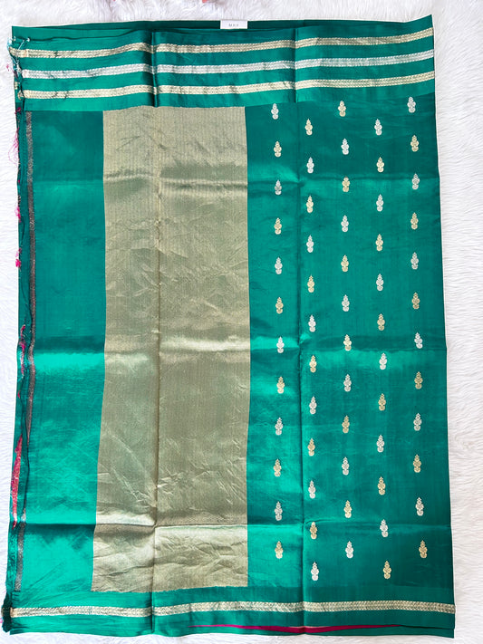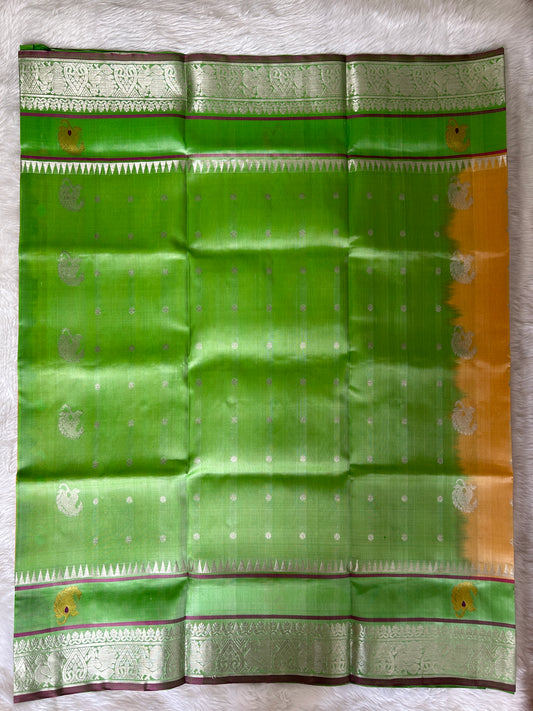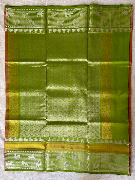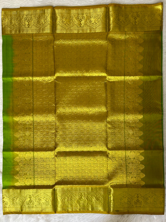 Venkatagiri Pattu Saree Parrot Green Colored Complemented With a Gold Color Kanchi Border