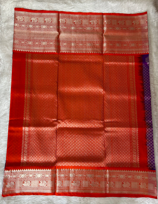 Venkatagiri Pattu Saree Purple Colored Complemented With a Orange Color Border