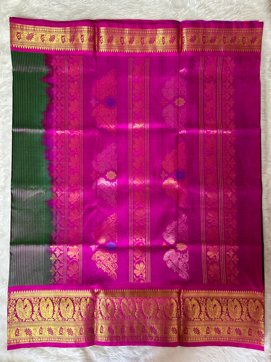 Venkatagiri Pattu Saree Green Colored Complemented With a Pattu Pink Color Kanchi Border