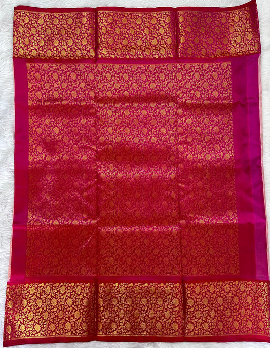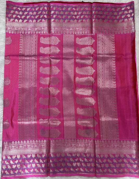 Venkatagiri Pattu Saree Rose Pink Colored Complemented With a Pattu Rose Pink Color with Silver Zari Border