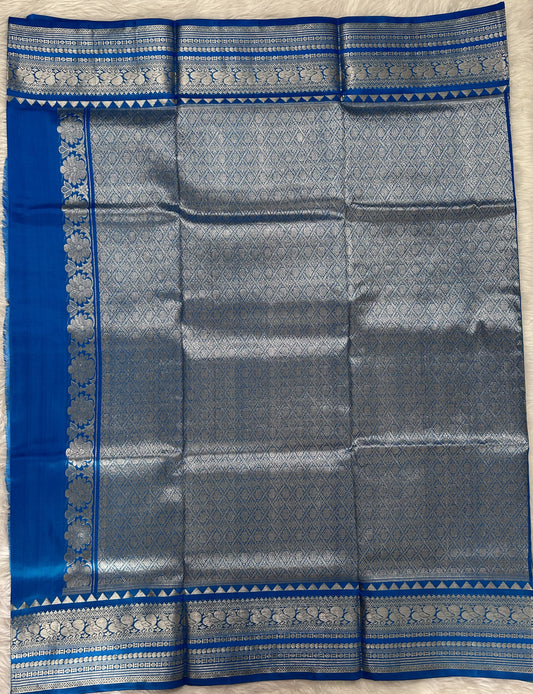 Venkatagiri Pattu Saree Dodger Blue Colored Complemented With a Pattu Dodger Blue Color Silver Zari Border