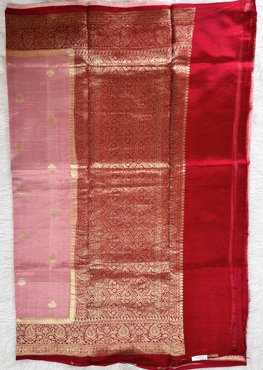 Banarasi Tussar Georgette Saree Red Colored Exquisite Zari Border.