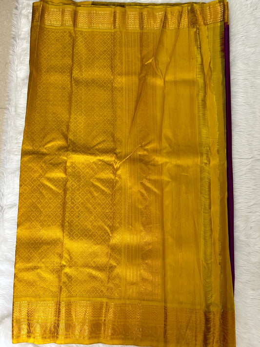 Gadwal Pattu Saree Purple Colored Complemented With a Pattu Mustard Yellow Border