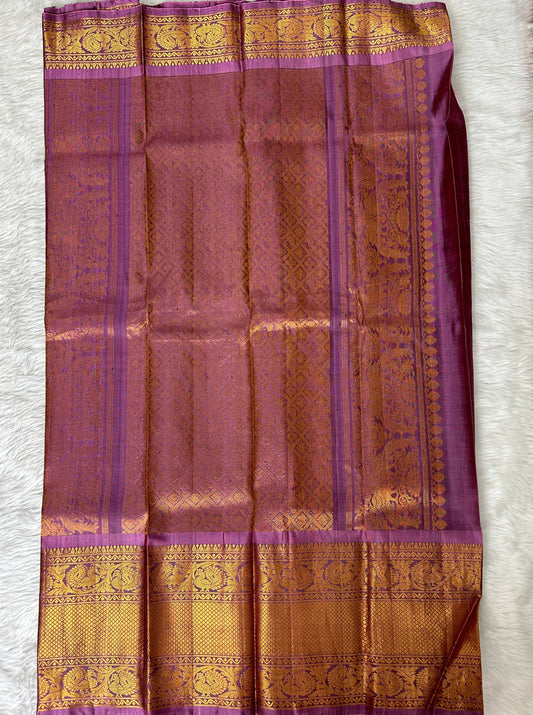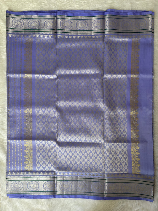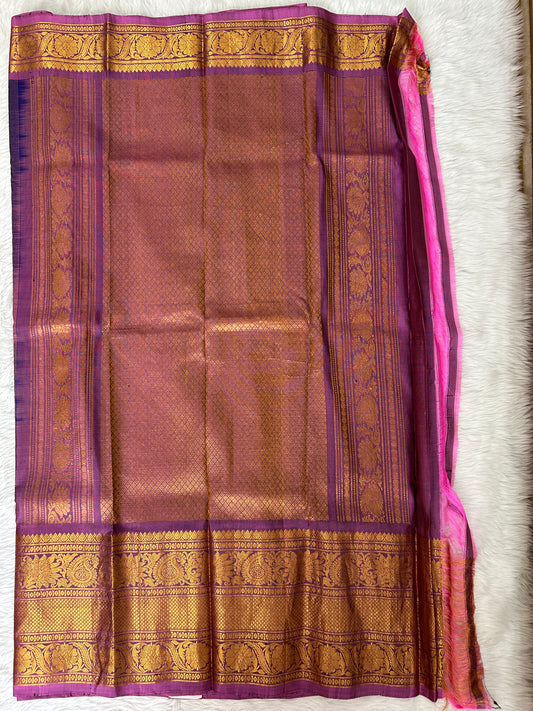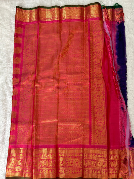 Gadwal Pattu Saree Purple Colored Complemented With a Mehndi Green Kanchi Border