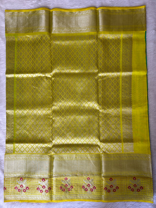 Venkatagiri Pattu Saree Greenish Yellow Colored Complemented With a Lemon Yellow Color Border