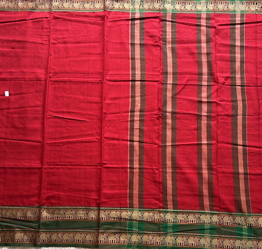 Narayanpet Cotton Saree Barn Red Colored Complemented with a Thread Border.