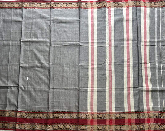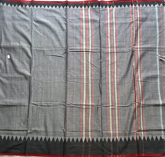 Narayanpet Cotton Saree Lava Gray Colored Complemented with a Thread Border.