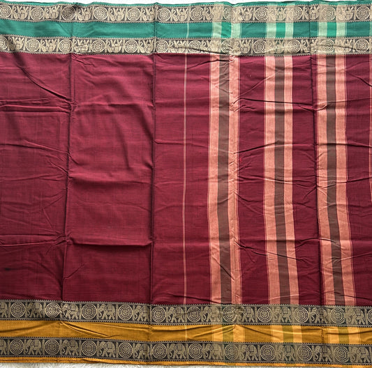 Narayanpet Cotton Saree Dark Plum Colored Complemented with a Thread Border.