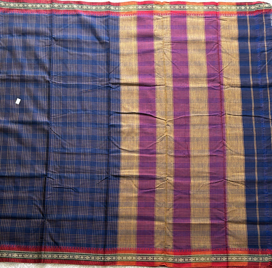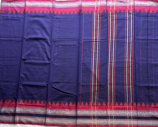 Narayanpet Cotton Saree Indigo Blue Colored Complemented with a Thread Border.