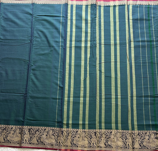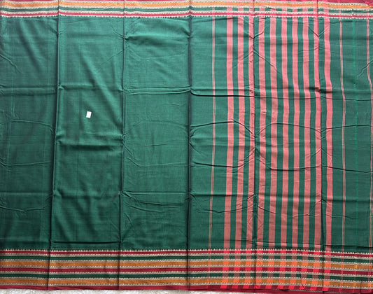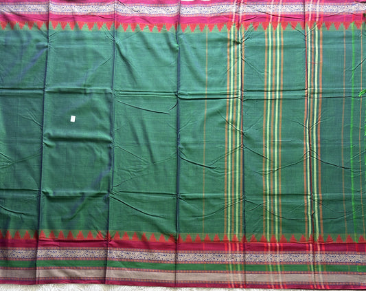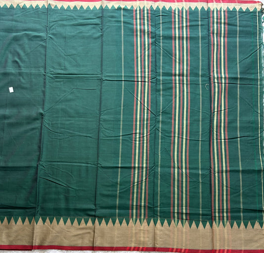 Narayanpet Cotton Saree Dark Pine Colored Complemented with a Thread Border.