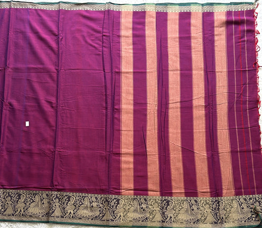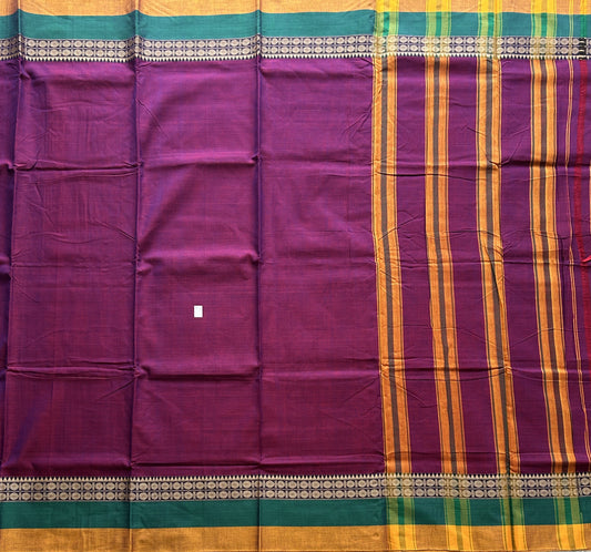 Narayanpet Cotton Saree Dark Lilac Colored Complemented with a Green Thread Border.
