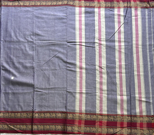 Narayanpet Cotton Saree Denim Colored Complemented with a Thread Border.