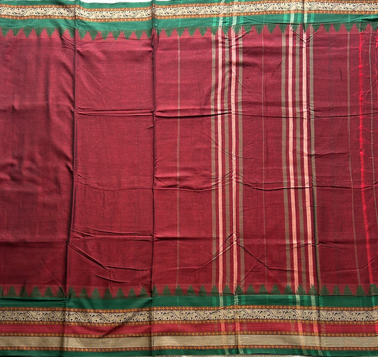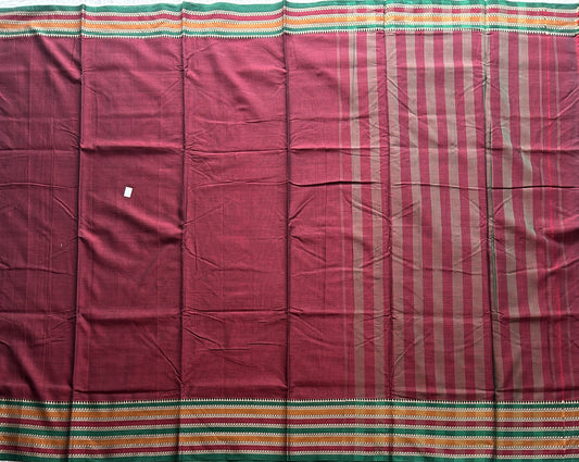 Narayanpet Cotton Saree Sangria Maroon Colored Complemented with a Thread Border.