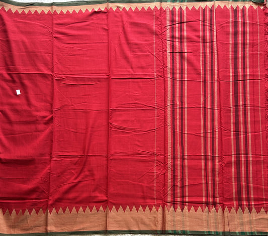 Narayanpet Cotton Saree Carmine Red Colored Complemented with a Thread Border.