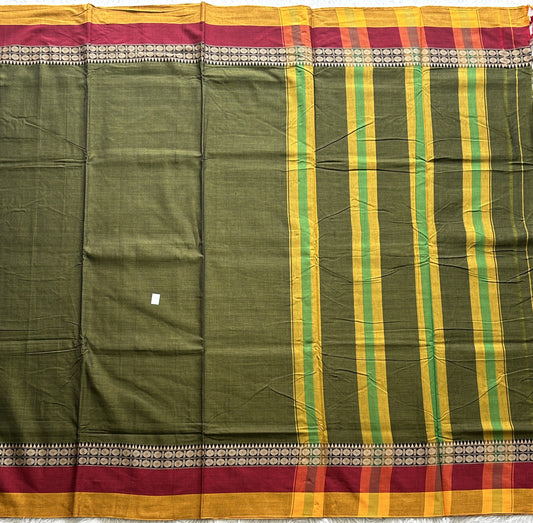 Narayanpet Cotton Saree Army Green Colored Complemented with a Thread Border.